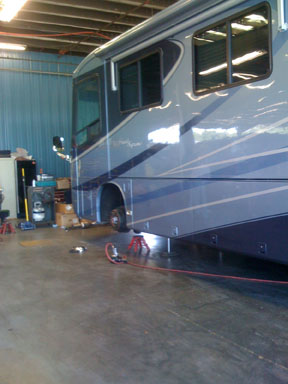 When we got back to the RV the new satellite was in and working: the HD and DVR are great. However, having been shown that our 6-year-old tires had some splits, and having safety as our major concern, Ken decided to get all new tires.