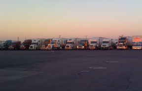 When we pulled up there was a line of 18-wheelers, all in a row and with drivers' asleep, we assumed. It's amazing that they can back those very long trucks the way they do. New standards allow 6 more inches of width, and with lengths that can exceed 50 feet, it is truly mind boggling.