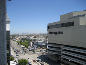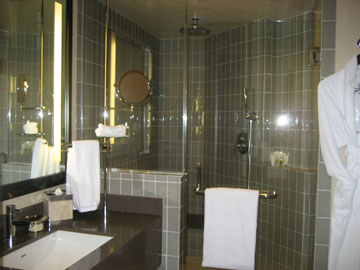 We decided to stay at a hotel near the restaurant we'd be going to. Andy put us on to it. It's called the Sofitel and is quite European in design. The room overlooked a very large shopping mall called the Beverly Center. The shower was great; after being in a tiny motor home for so long it was truly luxurious. You can see the drench head. However, I found the bed curious. It had a sheet on the bottom and only a very thick (and heavy, I thought) puff. No upper sheet. The blanket was to be the sheet. I was very warm and kept getting up to turn the A/C down. Anyone have that kind of hotel experience?