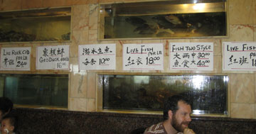 Scott did not join us at Ocean Star because of his ankle, but the four of us did a pretty good job of choosing dim sum treats from carts as they whizzed by. This is truly a Chinese restaurant; no one spoke English and we were one of three tables who were non-Asian. As you can see, you can order really fresh fish from their tanks of swimmers. We ate our fill for a grand total of $22 (yes, for four).