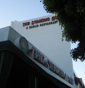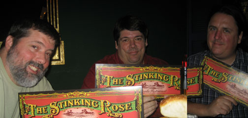 Dinner would be a reunion of sorts. Every time we traveled to LA we would go to "The Stinking Rose" restaurant. Eric had first discovered it in San Francisco. Its motto is "We serve food with our garlic." Here is a picture of a garlic tree in their lobby. You can see the garlic buds growing on the branches (yeah, right).