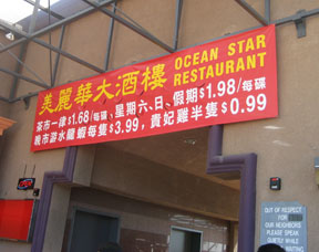 Our dim sum brunch at Ocean Star was not to be until noonish on Sunday, so Ken and I had and early breakfast at the hotel. You can see the influence of McDonald's here, with the hotel's version of a sausage egg McMuffin on a bagel. Ken could only eat half. It was huge.