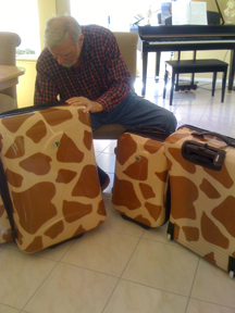 Ken decided to research luggage that would be easy to identify at the time of pickup. (Everyone seems to have black.) So, this is what he found. Can you believe it? It's called Giraffe. The set was originally $800, but on sale for $135. He couldn’t resist. Each piece fits inside the other, so it's nice for storage and it actually packed very well. I guessed that we would be laughed out of the airport, but no one seemed to pay any attention, even at the hotels. Perhaps they were too embarassed to say anything. When I sent this picture to my sons, Andy used the work "hideous" to describe it, and he's right. It certainly won't win any beauty contests. |