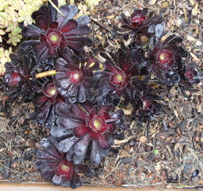 You may remember some time ago I showed you a picture of one of our weird-looking succulents (I didn't — and still don't know — its name). It grew very fast and got pretty big, so our yard guy simply cut off all the legs and stuck them in the ground to form two totally different arrangements.