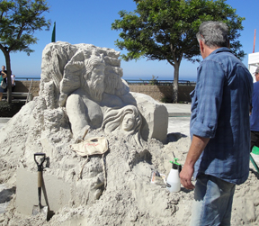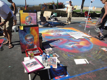 Ken had the idea of having a trompe l'oeil picture on the door along the stairway — perhaps make it look like a wine cellar door or something. So, we went to the Carlsbad Art Fair, which was having a sidewalk-painting contest. My niece Lori had taken me to a terrific one in Palm Beach, but this one was a bit disappointing. No trompe l'loeil, but some nice art and sand sculpture, in any case.