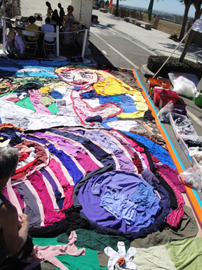 The picture above right depicts a scene from Alice in Wonderland. I did a poor job of getting it, but you can see Alice in the upper right, and most of the Cheshire Cat in the bottom part of the picture. It was all created using colored t-shirts, laid about. Very creative.
