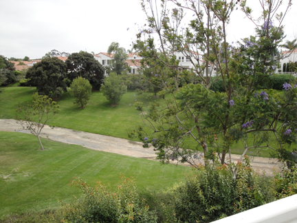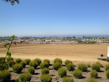 You may remember the fields of flowers like the American flag. The Art Fair was above the fields. This photo is looking down from the fair, across the flower fields (awaiting the next planting), across part of Carlsbad to the ocean. Ken had a churro before we left.