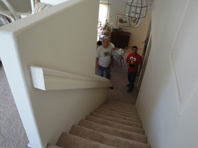 We started three efforts simultaneously: new kitchen cabinets, new stairs, construction reconfigurations (master bath, Ken's office, wet bar). The stairs finished first.