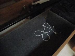 Surprisingly, Ken's iMac, which was stored under the bed, was gone also. You can see where they lifted the mattress. Under the bed was the computer, where now only a lonely cord resides.