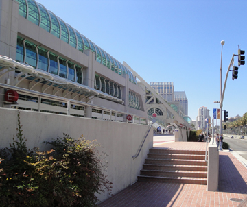 The convention center seems to run many blocks long and is very pretty. The Quilt Show was at the south end of the convention center and we got off the trolly at the north end. It was a really long walk back. the picture on the left below shows how long it is. The one on the right was taken from the inside. It's quite impressive. I got distracted looking at all the quilts, and forgot to take pictures. I did buy a quilting table, however, that will have to be picked up in Poway next week (haven't a clue where that is, but evidently not too far).