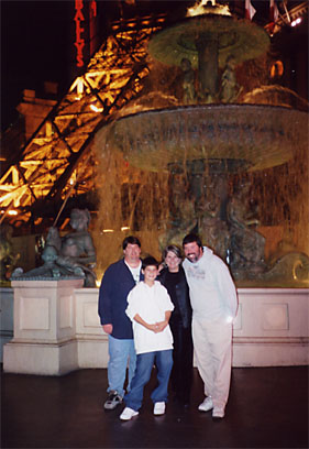 | Eric, Kyle, Lori, and Andy at the base of the Paris hotel. | ||||||||