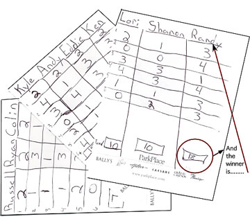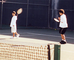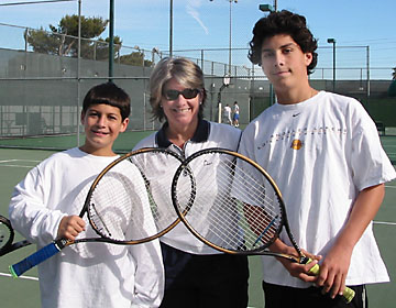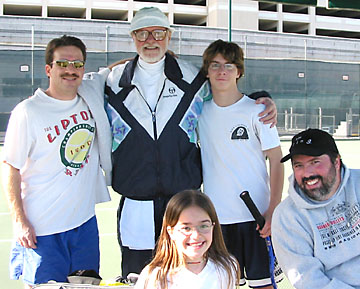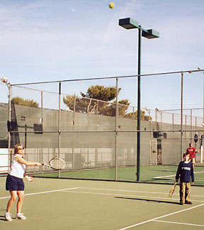 | On Saturday morning ten eager tennis players filled three courts for some round robin play. We were fortunate to have Nicole for our tournament director. She kept us moving from court to court as we played our six rounds. Plus she tallied up the final count of most games won, the winner of which was Randy her father. What a player! We all had fun mixing it up. Everyone was a good sport, and the weather cooperated with a mild day and plenty of sunshine. | ||||||||||