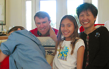 | Bruce and Nikki with children Amanda (took a cold pill and went to sleep), and "Miss Clara," Ashley. | ||||||||||||||