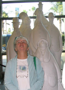 On Tuesday it was goodbye to San Diego. I posed with the statues in the airport, who are all looking up, as if to find their flights. (Nothing on that wall to speak of.)