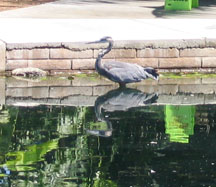 The heron below reflected in the water as it watched for any edible fish than swam by.