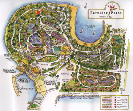 Some rooms overlook the Paradise Cove (left). Our room can be seen on the map next to the red arrow. The room is depicted below.