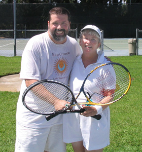 We played round-robin tennis, rotating every two games, for a couple of hours. Hard courts are VERY different from the clay that we're used to, in Florida. (I'm pretty sure Ken took the most number of games; I know it wasn't me.)