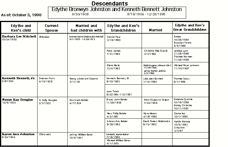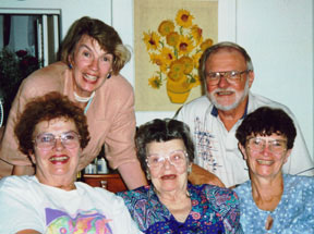 Today, I am so very lucky to have Barbara here with me since Ken died (December 28, 1995), after he spent a good part of the year 1995 in bed because of his tired heart. I miss him very much, but I had him for 66-1/2 years, so I was very lucky. And he was lucky not to have had to suffer all that time. I had lots of help and we did fine. Barb had lost Norman way back in 1973, so we are together and she is so good to me as are Ken and Shannon, Kelly and Susan, and lots of good will from Karen.