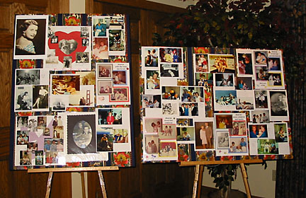 Many people contributed pictures which were set up on easels at the back of the room, so that people who came to pay their respects might see Sharon from the time when she was very young, through her loving hugs with her children and grandchildren. |