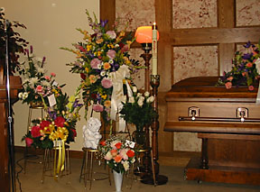 | Everyone at this service was given a flower from the blanket of flowers covering the casket. Don and his children watch the fork lift. | |||||||||||||||||||||||||||||||||||||||||||