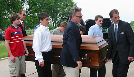 | Along with two men from the funeral home, several of the children and grandchildren served as pall bearers. | |||||||||||||||||||||||||||||||||||||||||||