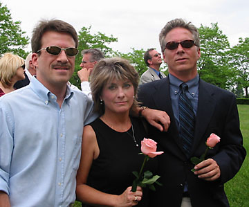| June 9: Day of the memorial service. Everyone met at Don's house. The big excitement (other than getting everyone dressed and the house picked up), was Don and Sharon's good friend Mary, who brought over some tables and chairs, and got stuck in the driveway. Mary is holding the beloved Taco. | |||||||||||||||||||||||||||||||||||||||||||