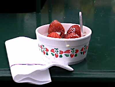 | It wasn't breakfast time, but I couldn't resist having strawberries and cream, a Wimbledon tradition. Lines were long, but moved pretty fast. | Yum! | |||||||||||||||
